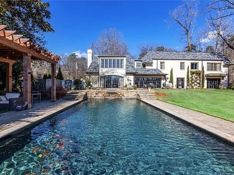 Waterfront living inside the Perimeter. 5 bedrooms, 6 bathrooms, 5,297 square feet on 1.22 acres in Buckhead's Rivermeade neighborhood. Directly on the neighborhood lake with a private dock.